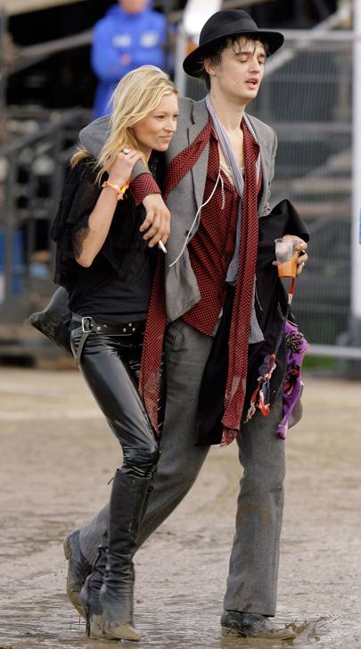 It was Vogue contributing editor, Kate Moss, who first taught us that the glossy PVC pant is the ultimate in mud-proof style at Glastonbury in 2007. The look must have been immediately pinned to Hedi Slimane’s moodboard, because more than a few Moss-Glasto inspired looks crept onto the Saint Laurent runway during his tenure at the house. Ten years later, and it’s still the most legendary getup to have graced Worthy Farm.